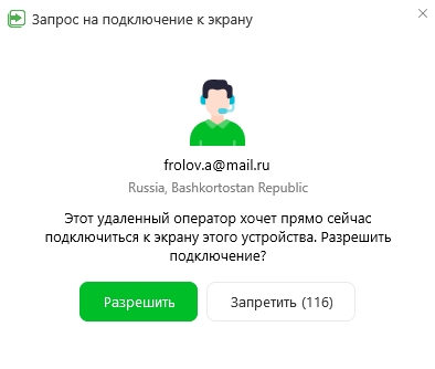 Его участие должно быть одобрено либо инициатором подключения, либо оператором удалённого устройства через приложение агента: