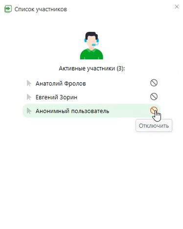 С стороны агента иконка активного подключения изменится, а кнопка управления участниками станет доступной: