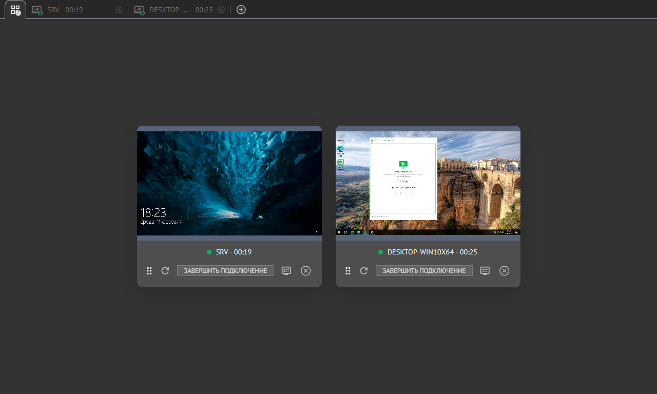 Для одновременных подключений предусмотрена удобная панель подключения, которая позволяет открывать несколько сеансов в разных режимах — либо к одному устройству, либо к нескольким устройствам одновременно.