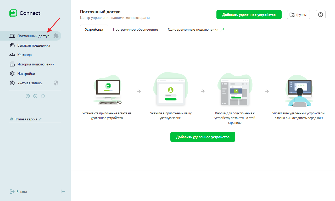 Узнайте, как добавлять устройства в Постоянный доступ, организовывать их по группам, делиться устройствами и многое другое в руководстве Постоянный доступ. Подробное описание.