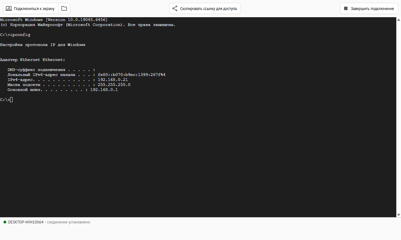 Этот режим предназначен для работы с командной строкой удалённого устройства. Подходит для фоновых задач, которые не должны мешать удалённому оператору.