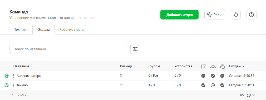 Отделы, связанные с группами AD, помечаются иконкой . Все пользователи наследуют права отдела.