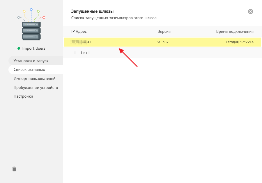 После запуска он появится на вкладке Запущенные шлюзы карточке шлюза: