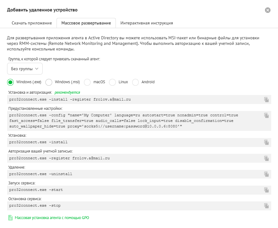 Установите агент на устройства и привяжите его к своему аккаунту¶