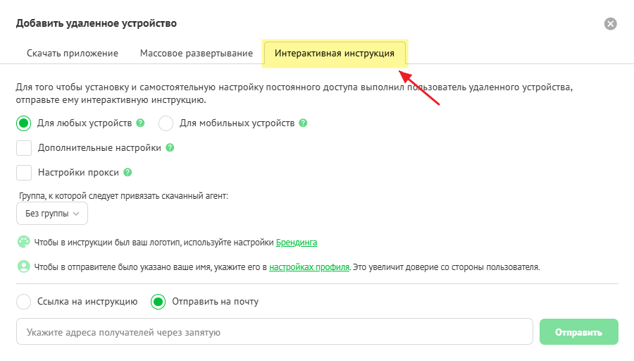 Если удалённым устройством управляет физический оператор, вы можете отправить ему стандартную пошаговую инструкцию по настройке постоянного доступа.