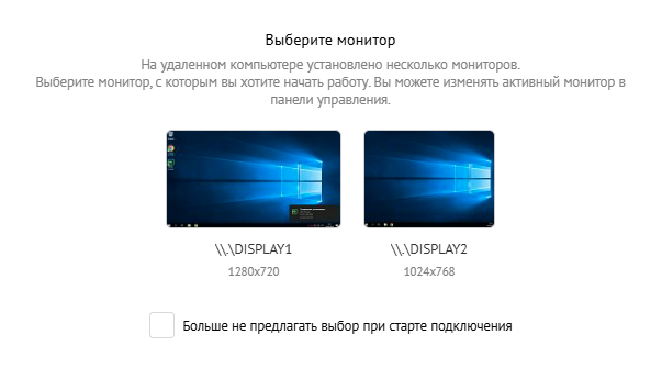 При подключении к устройству с несколькими мониторами вам будет предложено выбрать, с какого монитора начать: