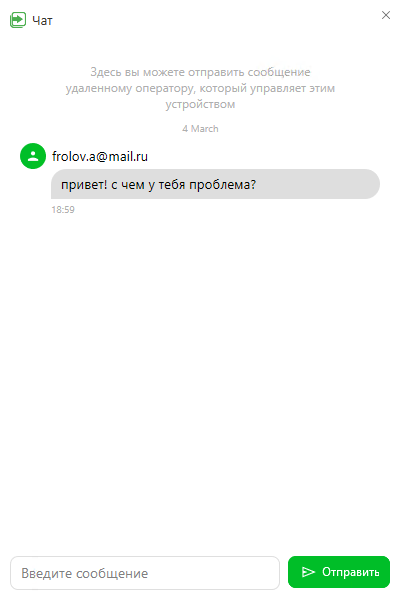 Во время сессии вы можете взаимодействовать с оператором удалённого устройства. Доступны следующие функции: