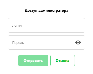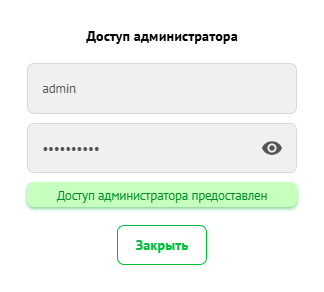 После нажатия кнопки появится окно для ввода логина и пароля администратора.
