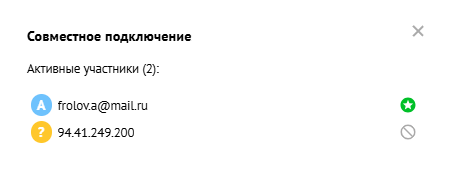Список участников отображается в окне при нажатии на соответствующий индикатор: