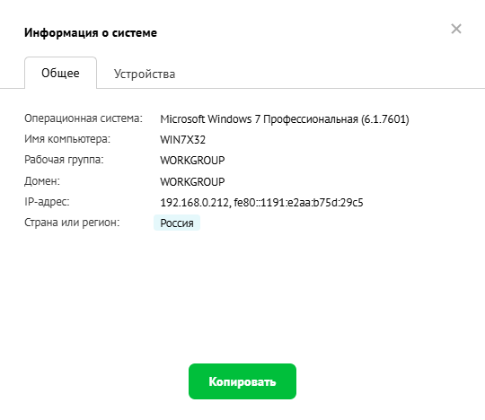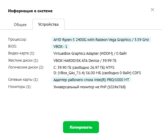 Вы можете просматривать системную информацию, включая интегрированные устройства, установленное ПО, сетевые свойства и сведения об ОС.