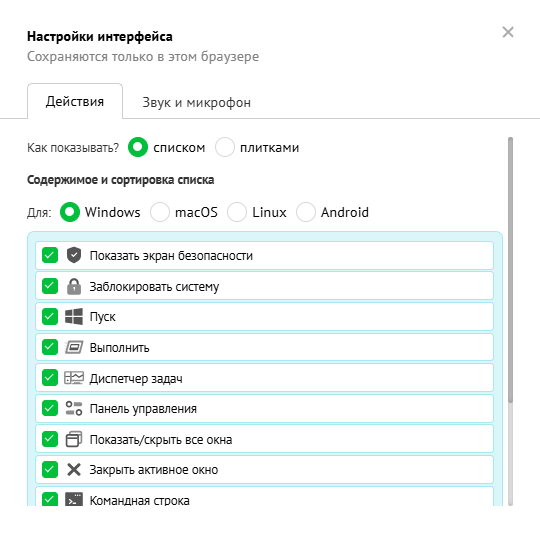 Вы можете настроить список команд в настройках панели управления. Для каждой ОС можно изменить порядок команд или скрыть ненужные.