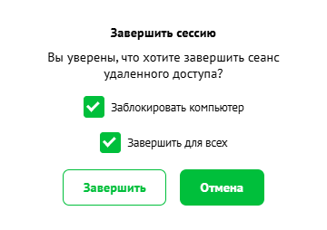 Если к сессии подключено несколько участников и вы являетесь основным участником, вы можете завершить сессию для всех сразу, установив флажок Завершить подключение для всех операторов.