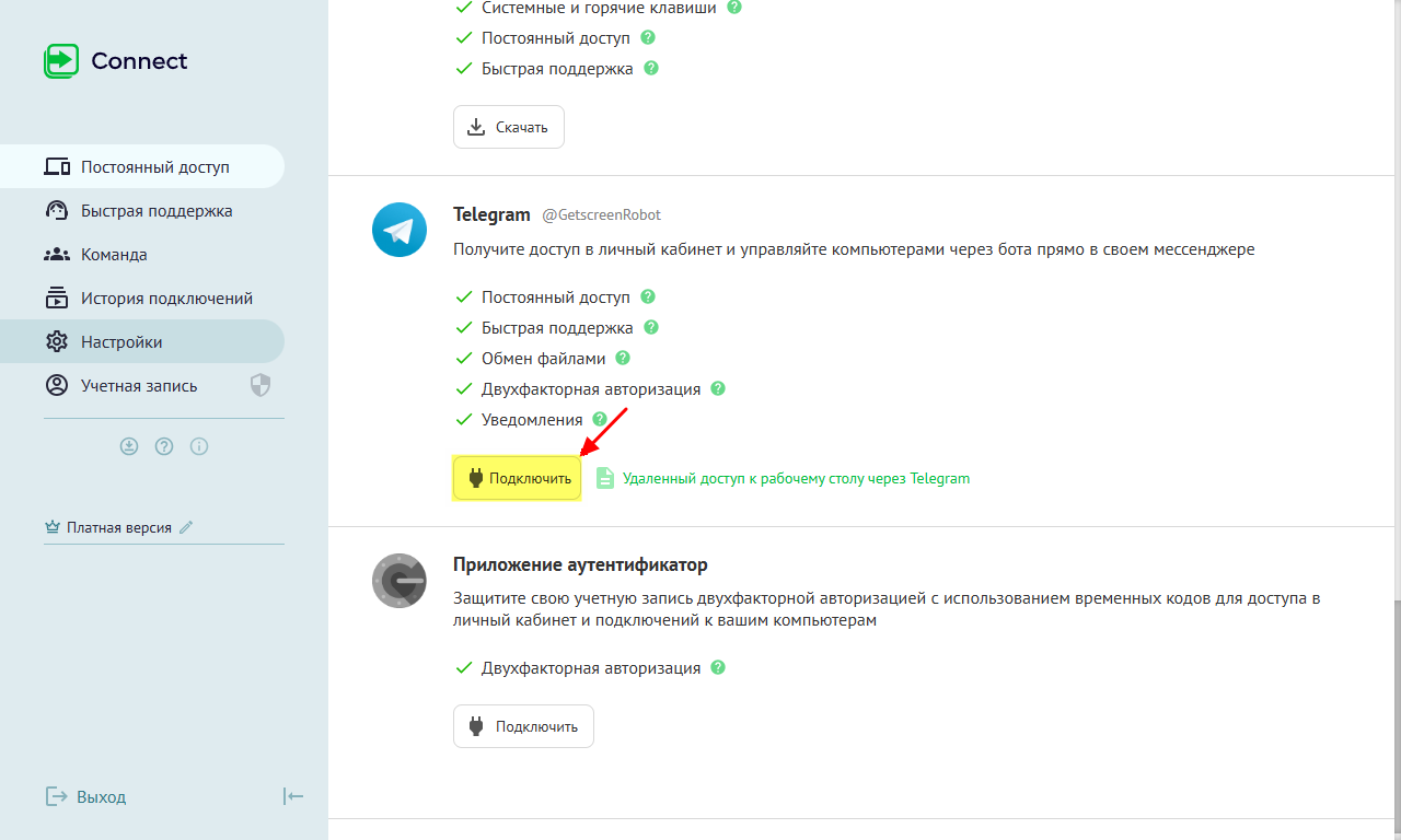 Telegram — одна из первых платформ, в которую мы интегрировали удалённый доступ и предоставили техникам возможность постоянного доступа к своим рабочим столам, быстрой поддержки и загрузки файлов напрямую через мессенджер.